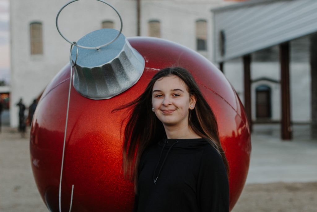 Believe it or not, this was taken on the rare day last week where we had a bright Sunny Day. I left this picture unfiltered to show the warmth and brightness of the Sun. Normally I am not a fan of the Sun but after a week of gray, wet, Wintery weather I was super glad to see it. We hopped into our rubber boots and took off into the Woods to see what we could explore before I had to go work and we were not disappointed. There has always been something magical about the Woods ever since childhood for me and I hope Glitter finds them magical as well. Do you know what they are commonly called? I was a little surprised when I found out. They are called Turkey Tails. They are a fairly common fungus especially in my area in Arkansas. Hubby and I are have been exploring trying to learn more about fungus in our state. We have a hiking trip planned for the early Spring to go in search of more. This picture seems so simple but truthfully it is a testament to how far I have come as a photographer. If someone had told me I would be able to shoot something like this I would have laughed and told them in my dreams. Is this the best photograph out there? Of course not. There is much wrong with it but I am proud of it. The crispness of the acorn cap to the left pulls your eye off the middle. However, if you look again, the whole picture comes into focus. The double acorn caps in the front, the leaves in the middle and the soft bokeh in the back. It all allows you to form a story of your own just based on a photograph. I am learning how to shoot portraits and am super grateful I have a willing subject. Glitter has been super cool with a spur of the moment notice to go take a new round of pictures. This was between Christmas and New Years while the decorations were still up downtown of our charming city. We fought the wind the whole time with hair and cooler temps. She was a trooper and this was all of ours favorite picture of that evening.